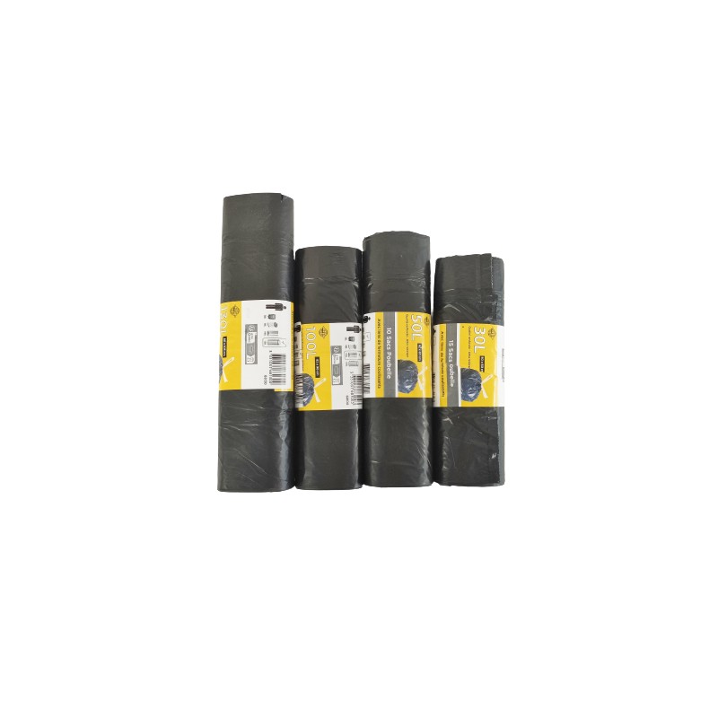 SAC POUBELLE 50 LITRE COULEUR NOIR 10SAC /PAQUETS 62x67cm avec liens de fermetures. composition : POLYETHYLENE