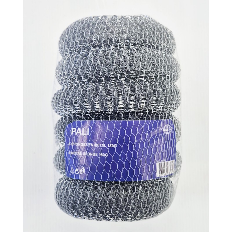 Eponge metal x6 PALI pour nettoyer les ustensiles de cuisine en acier, en inox, en céramique, mais aussi décaper le bois ou les surfaces à peindre…