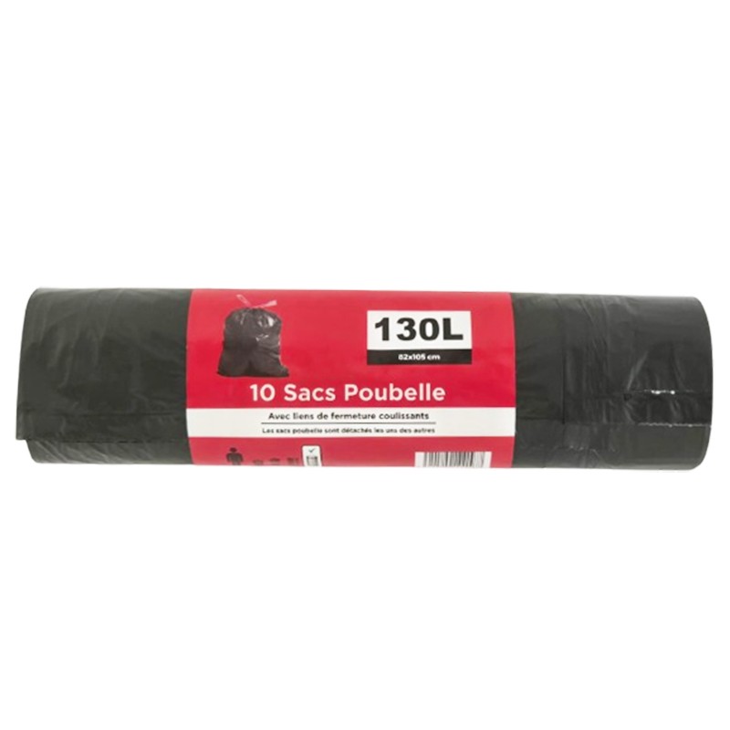 SAC POUBELLE 130 LITRE COULEUR NOIR 10SAC /PAQUETS 82X105cm avec liens de fermetures.