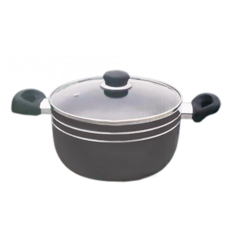 Marmite faitout 36cm en aluminium + couvercle en verre Revêtement anti-adhésif - Semelle inox - Compatible lave-vaisselle - Idéale pour une meilleure cuisson grâce à la répartition de la chaleur - Tous feux dont induction. couleur gris