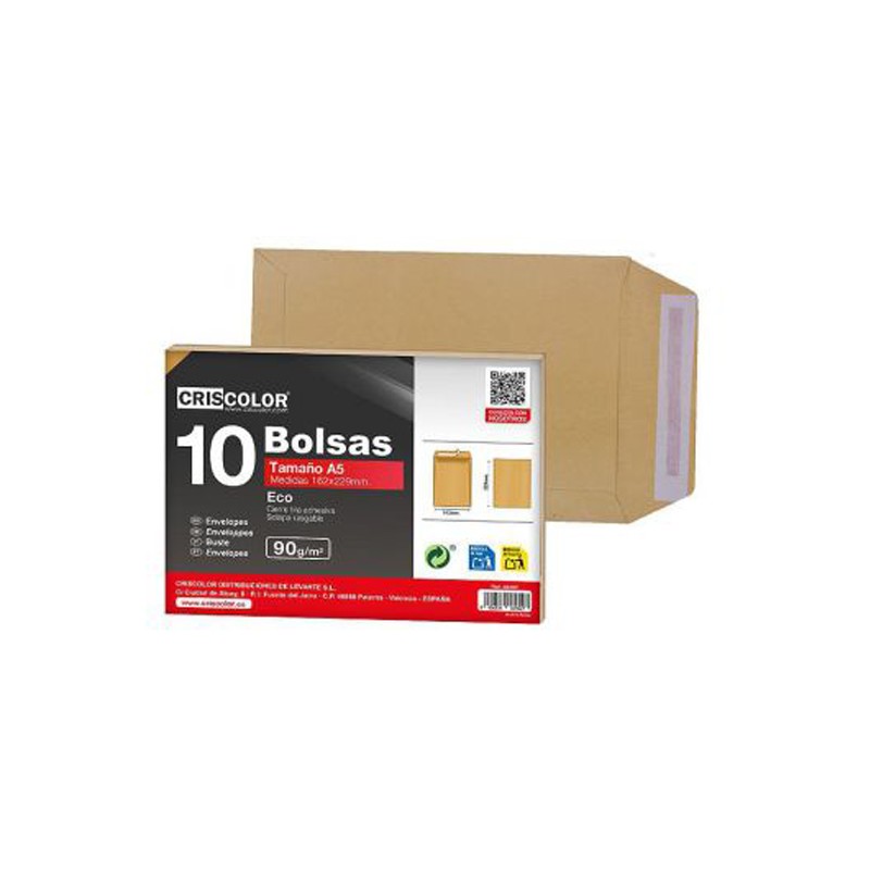10 enveloppes kraft 162x 229mm (C5)